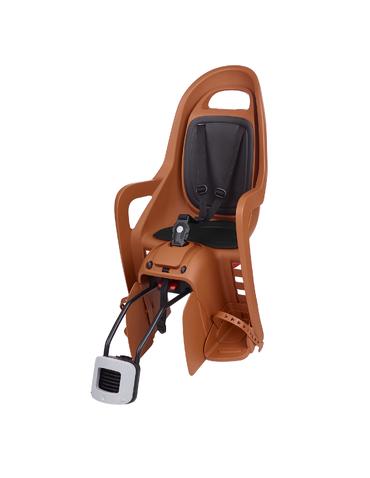 Також дитяче крісло для велосипедів на багажник відрізняється більшими габаритами з захисними бортиками з боків, має підставки під ніг з ремінцями, що запобігають потраплянню ніг в колеса, а нахил спинки можна також регулювати, щоб в довгій дорозі малюк міг зручно заснути. При цьому таке дитяче сидіння на велосипед за рахунок встановлення на багажник не має амортизації, тому краще використовувати його на рівних дорогах.