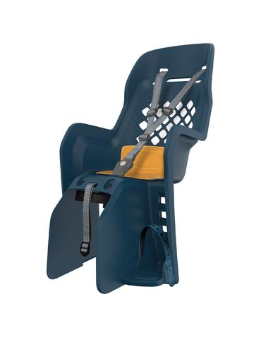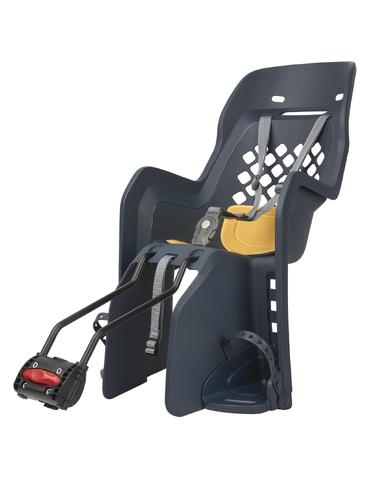 Сидіння для дитини на багажник міцно кріпиться позаду і підходить для усіх видів велосипедів. Таким способом забезпечується надійна й жорстка фіксація, а вантажопідйомність може зрости до 22 кг.