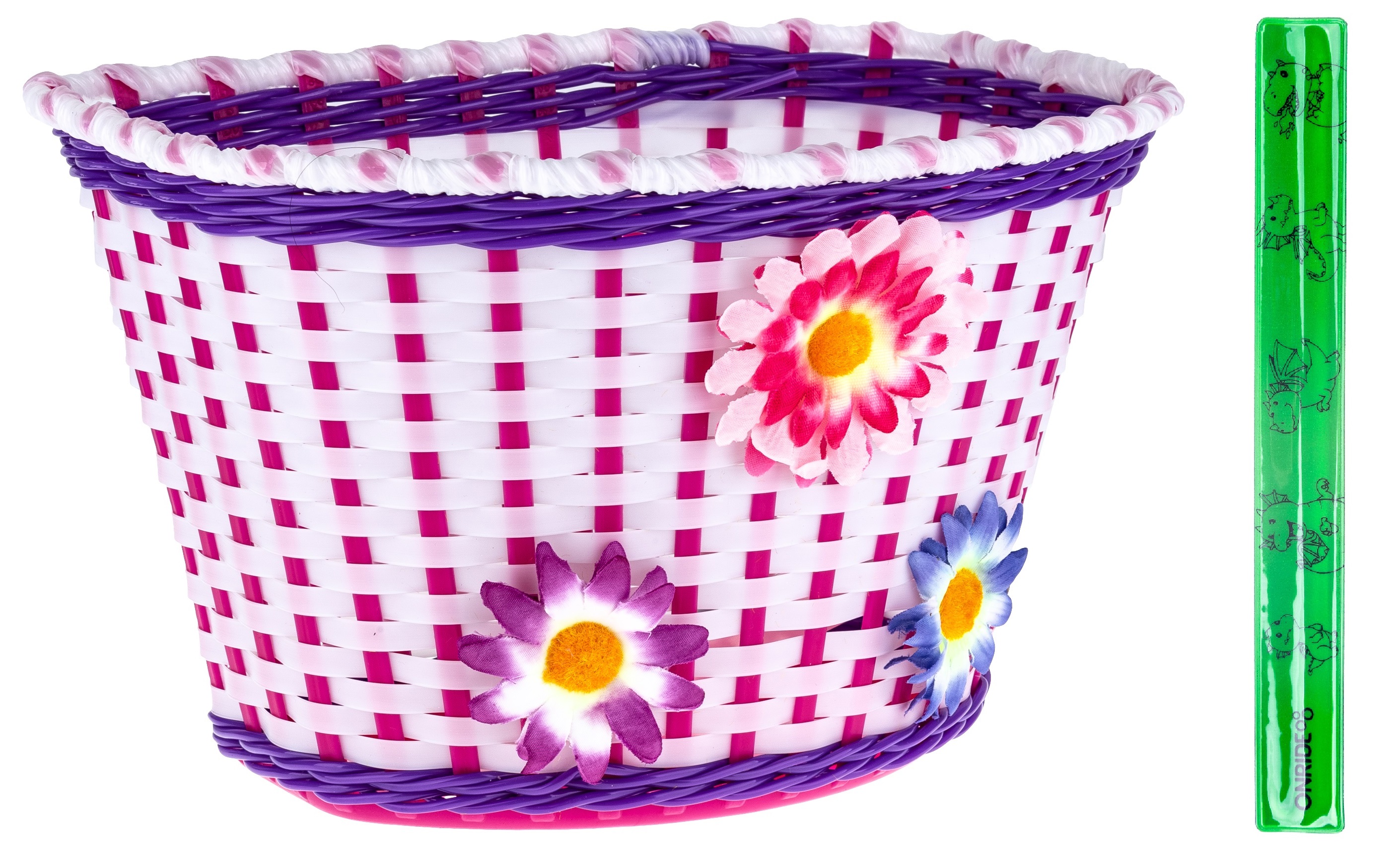 Дитячий кошик ONRIDE Funky — це зручний та яскравий аксесуар, розроблений спеціально для маленьких велосипедистів. Він виготовлений із міцного пластику і легко встановлюється на кермо за допомогою пластикових хомутів, які входять у комплект. Особливістю цієї моделі є вбудована світловідбивайка ONRIDE, що підвищує видимість дитини у темну пору доби або за поганої погоди.