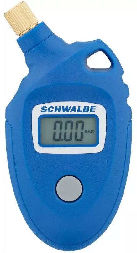 Електронний манометр Schwalbe Airmax Pro Pressure Gauge високої точності, сумісний з ніпелями Auto і Presta. Показує тиск у чотирьох одиницях виміру (psi, bar, kg/cm2, kPA).