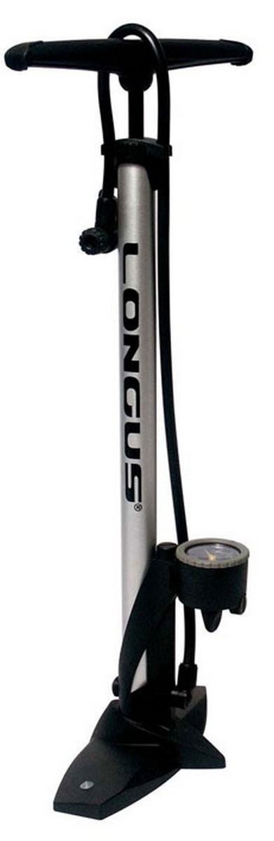 Насос підлоговий Longus Step Якісний і зручний підлоговий насос з алюмінієвим корпусом. Підходить як під велосипедний ніпель, так і під автомобільний. Характеристики: • Матеріал корпуса: алюміній • Матеріал основи: пластик • Голівка: на кламці AV (Auto Valve, Schrader) / FV (French Valve, Presta); • Максимальний тиск: 160 PSI / 11 Bar; • Колір: сріблястий; • Вага: 1000 г. Особливості: • Манометр; • Алюмінієвий корпус; • Стійка основа.