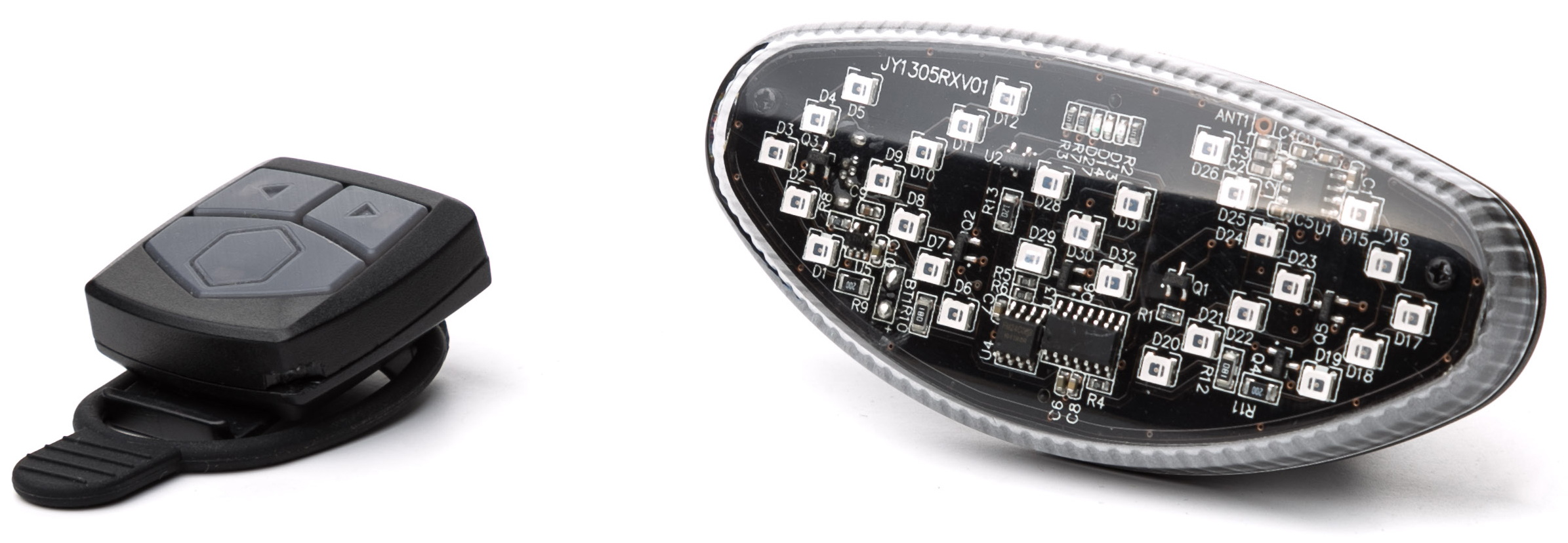 - Вага: 60 г (мігалка) + 15 г (пульт)