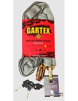 Gartex - надійні та практичні протиугінні ланцюги від українського виробника. Протиугінні ланцюги GARTEX продукт копіткої праці команди інженерів. Ми ретельно працювали над кожним елементом протиугінного ланцюга, провели десятки годин випробувань і тому впевнені в якості нашого продукту. Особливості: Високоміцний ланцюг квадратного перерізу з титановмісного сплаву підвищеної твердості. Замки спеціальної конструкції, що виключають перекушування та збивання. Поліестеровий чохол - міцний, довговічний, стійкий до впливу довкілля. Якість європейського рівня за українською ціною.