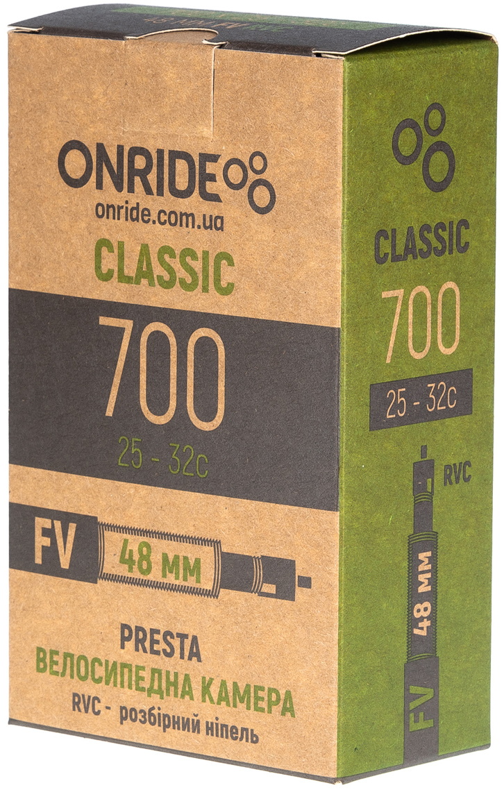 Камери ONRIDE з ніпелем Presta (FV) виготовляються за допомогою процесу формування, який забезпечує однакову товщину гуми. Завдяки цьому вони легкі, не виявляють значного опору коченню та витривалі до стиснення.