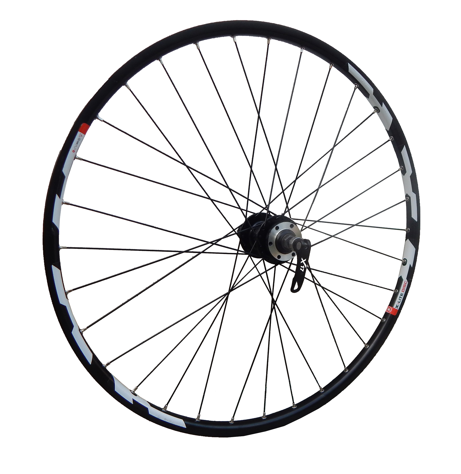 Надійне колесо зібране на ободі Mach1 X-Lite Disc 26" 32, втулці X17 32 та чорних спицях з неіржавіючої сталі Mach1 Inox Plus, ніпелі Pillar PB14G 14 мм. Завдяки використання інструмента для перевірки натягування спиць (тензометра), колеса збираються з максимально виваженим балансом, чим забезпечена їх жорсткість та надійність.