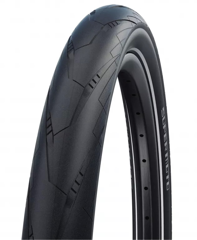Покришка Schwalbe SUPER MOTO розроблена для установки на електровелосипеди зі швидкісним режимом до 50 км/год.