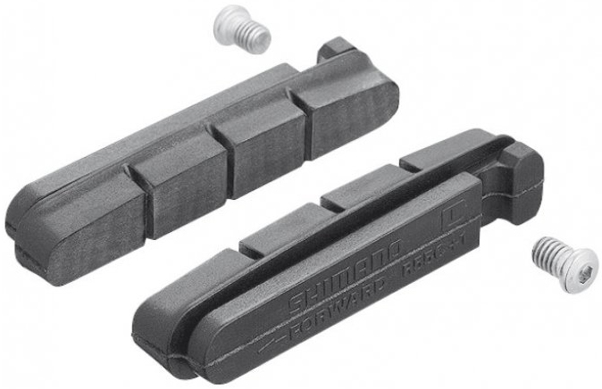 Гальмівні гумки шосе R55C+: високоякісні гальмівні гумки з м'яким компаундом забезпечують відмінну ефективність на сухих дорогах. Товщина збільшена на 1 мм і виробляють менше шуму і менше зношують обід завдяки більш м'якого матеріалу. Більший знос у вологих умовах. Касетна фіксація.