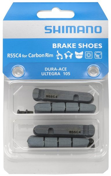 Гальмівні гумки шосе R55C4 DURA-ACE. Високоякісні гальмівні гумки для карбонового обіду. Висока ефективність на сухій і мокрій дорозі. Касетна фіксація. 2 пари в комплекті.