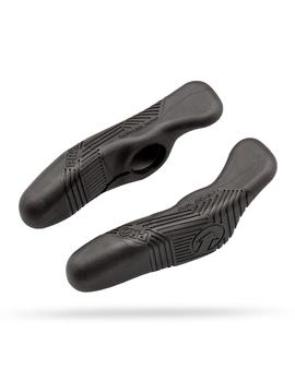 Ріжки Bontrager RL Ergo Ергономічні ріжки на кермо. Призначені для зниження втоми рук велосипедиста та підвищення керованості. Конструкція з алюмінію з замком вкритого двокомпонентною гумою. Текстурована поверхня для надійного хвату та комфорту. Характеристики: • Матеріал: Алюміній 6061 - T6 / гума; • Довжина: 90 мм; • Колір: Чорний; • Вага: 140 грамів.