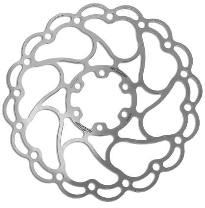 Ротор Alligator Aries Серія цікавих роторів нестандартного дизайну з хорошим охолодженням і низькою вагою. Характеристики: • Діаметр: Ø160 мм; • Матеріал ротора: нержавіюча сталь SUS 410; • Тип кріплення: 6 болтів; • Тип колодок: органіка/напівметал/металокераміка (Resin/Metal/Ceramic); • Колір ротора: сріблястий; • Вага: 80 г. Особливості: • Представлений у різних кольорових рішеннях лопатей; • Фіксуючі болти в комплекті. Додатково: Для кріплення ротора на 6 болтів використовують ключ Torx T25. Даний ключ включено до більшості мультифункціональних велосипедних наборів інструментів.
