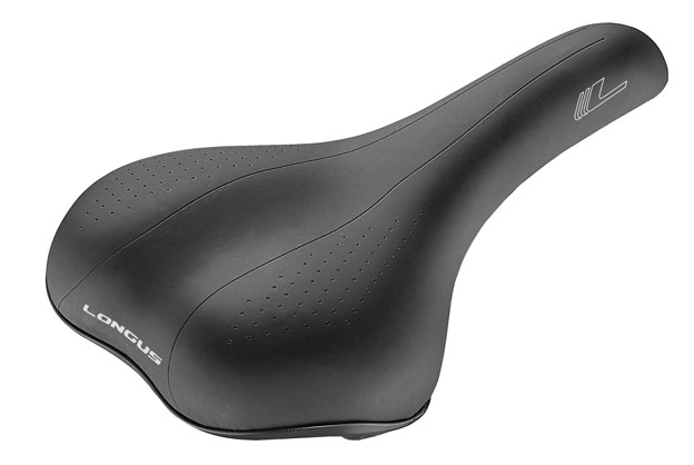 Велосипедне сідло Longus Elmos Зручне сідло зі зниженою центральною частиною та високоякісним покриттям верху забезпечує відмінний комфорт в широкому діапазоні умов. Сідло має пластикові вставки по периметру для захисту від ударів та протирання.