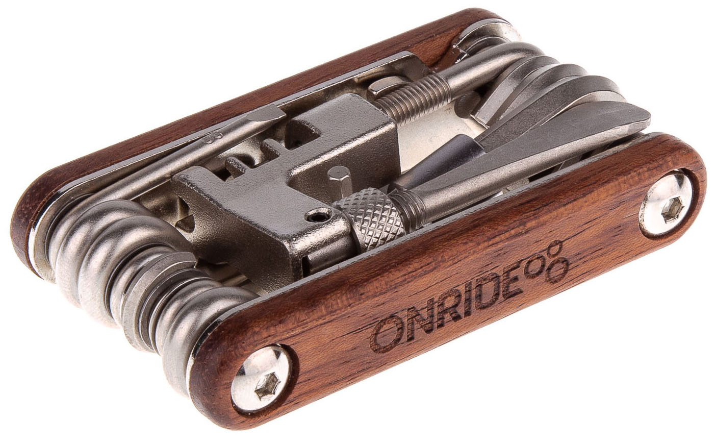 Мультитул ONRIDE Swing Набір ключів шестигранників на 20 функцій з бортувальною лопаткою, витискачем ланцюга, відкривачкою та спицьними ключами 14/15G у комплекті . А вишукана дерев'на ручка робить його ще більш елегантним. Компактний, маленький і легкий. Виготовлений з високоякісної загартованої сталі легованої Cr-V. В наборі: • Шестигранники 2 / 2,5 / 3 / 4 / 5 / 6 мм • Плоска викрутка Flat 3/Flat 5 • Хрестоподібна викрутка Ph1/Ph2 • Бортувальна лопатка • Витискач ланцюга • Відкривачка • Спицьні ключі 14/15G • Ключ торкс T10/T25