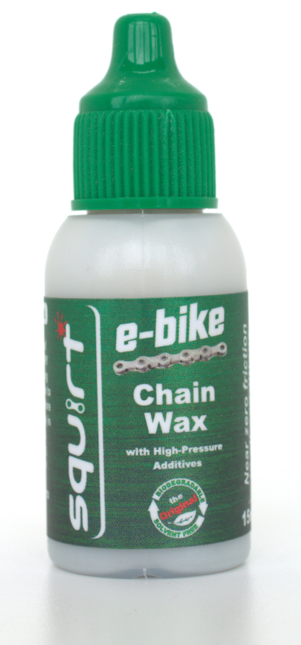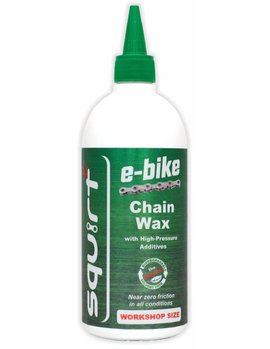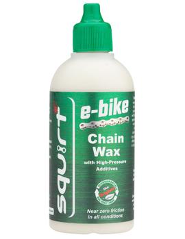 Мастило для E-bike має у своєму складі ту ж саму водно-воскову емульсію, що і звичайне мастило Squirt, але з додаванням спеціальних модифікаторів для роботи на високих оборотах. Воно більш слизьке і довше залишається на ланцюгу за вологих умов. Більше навантаження спричинює більший знос ланцюга. Це мастило покликане зменшити його і зберігати трансмісію сухою і чистою.