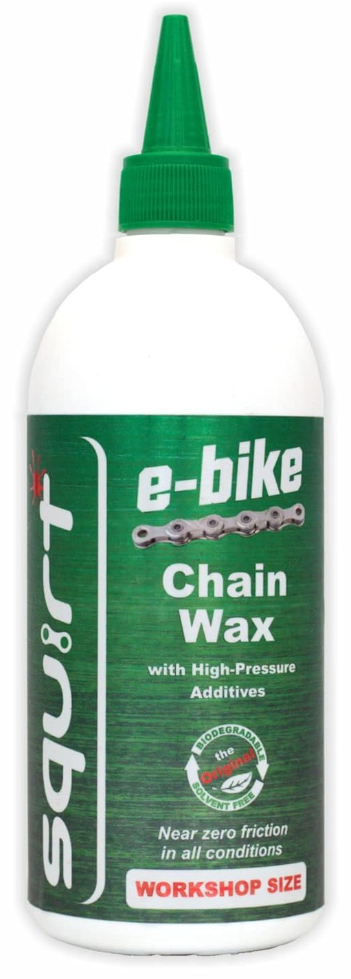 Мастило для E-bike має у своєму складі ту ж саму водно-воскову емульсію, що і звичайне мастило Squirt, але з додаванням спеціальних модифікаторів для роботи на високих оборотах. Воно більш слизьке і довше залишається на ланцюгу за вологих умов. Більше навантаження спричинює більший знос ланцюга. Це мастило покликане зменшити його і зберігати трансмісію сухою і чистою.