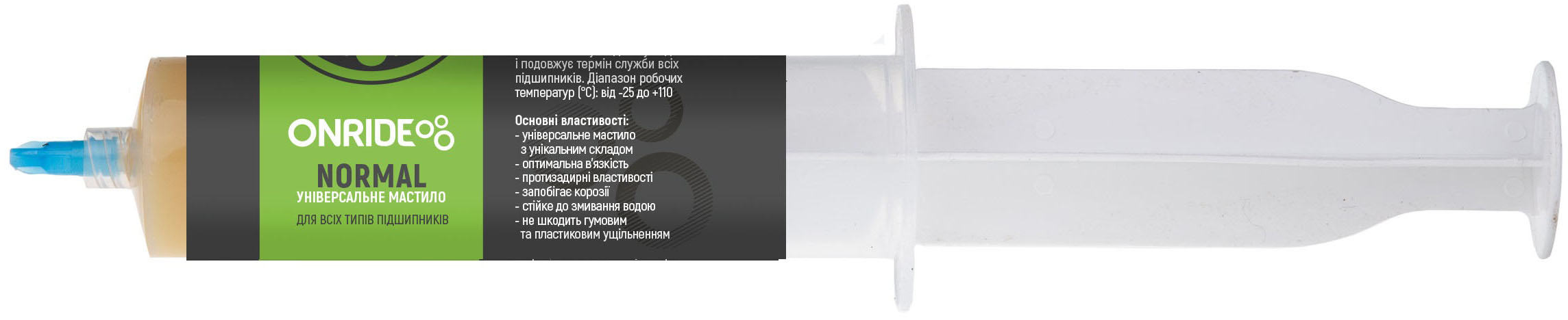 ONRIDE NORMAL - універсальне мастило, яке забезпечує відмінну водостійкість і подовжує термін служби всіх підшипників. Діапазон робочих температур (°С): від -25 до +110.