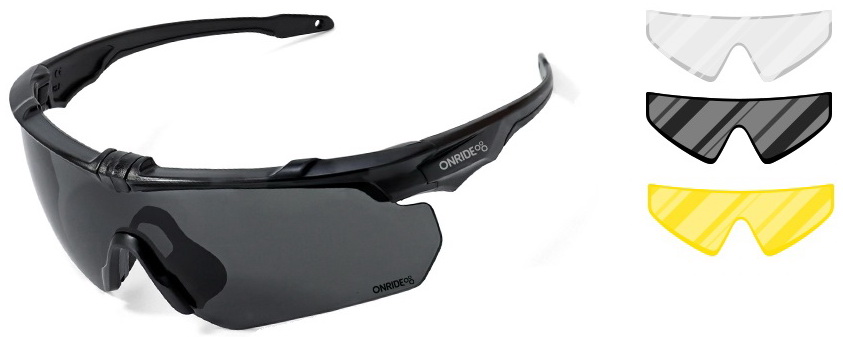 "Мілітарі окуляри ONRIDE із набором лінз: димчаста (17%) кат. 3, змінні лінзи: прозорі кат 0 (100%), жовті кат 1 (80%)