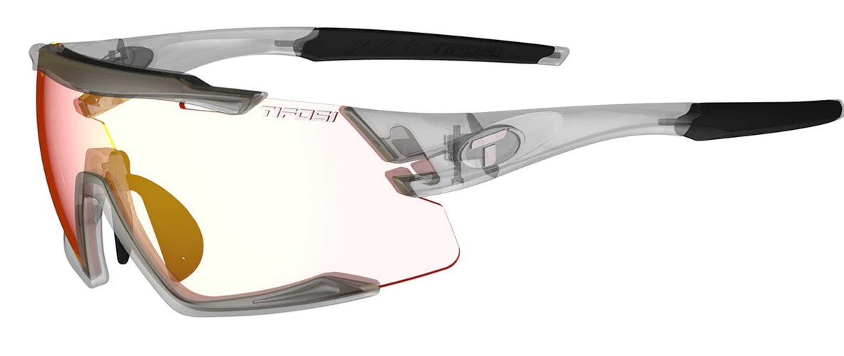 Високоякісна оправа з матеріалу Гріламід TR-90. Це надлегкий та гнучкий гомополіамідний нейлон, що характеризується надзвичайною міцністю та високою стійкістю до впливу хімічних речовин та ультрафіолетового випромінювання. Регульовані дужки та носоупори надають можливість повної адаптації окулярів під обличчя, що значно підвищує комфорт при їх використанні. Гідрофільна гума на носових упорах та завушних дужках підвищує зчеплення окулярів з обличчям навіть при контакті з потом та попереджає їх зісковзування. Полікарбонаті лінзи – надійність за будь-яких умов. Всі лінзи Tifosi виготовлені з міцного, гнучкого та стійкого до механічних ушкоджень полікарбонату. UVA / UVB (UV400) Protection. Всі лінзи Tifosi забезпечують 100% захист від шкідливого ультрафіолетового випромінювання (довгих та середніх промінів). Фотохромні лінзи Tifosi Fototec пристосовуються до оточуючого середовища з надзвичайною швидкістю в 10 секунд, змінюючи свій відтінок в залежності від умов освітлення. При яскравому сонці мікроскопічні фотохромні частки, що знаходяться всередині лінзи, реагують на ультрафіолетові проміні та затемнюють скло таким чином, щоб не потрібно було щуритись. При помірному освітленні ці частки повертаються в свій первісний стан та надають можливість лінзам пропускати більше світла. Фотохромна лінза Clarion Red Fototec має діапазон зміни пропускної здатності світла від 14% до 74. Така лінза, забезпечуює чіткість видимості, комфорт та захист від світанку до заходу. Лінзи даної моделі мають вентиляційні отвори для уникнення запотівання. Лінзи мають протиблікове покриття Glare Guard, яке покращує видимість та знімає напругу очей. Оптична децентралізація лінз усуває викривлення та запобігає оптичного збільшення. Твердий футляр в комплекті для зручного зберігання окулярів, а також мікрофібра для очищення лінз.