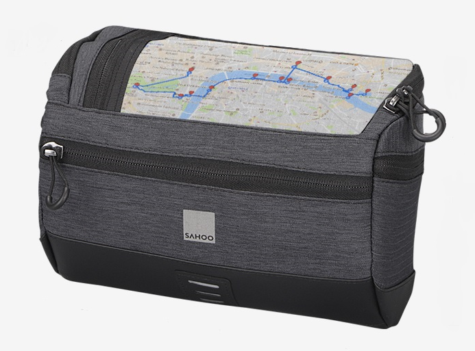 Зручна об'ємна сумка на кермо з прозорим відділом зверху для гаджета чи мапи та череплічним ременем для зручності носіння.