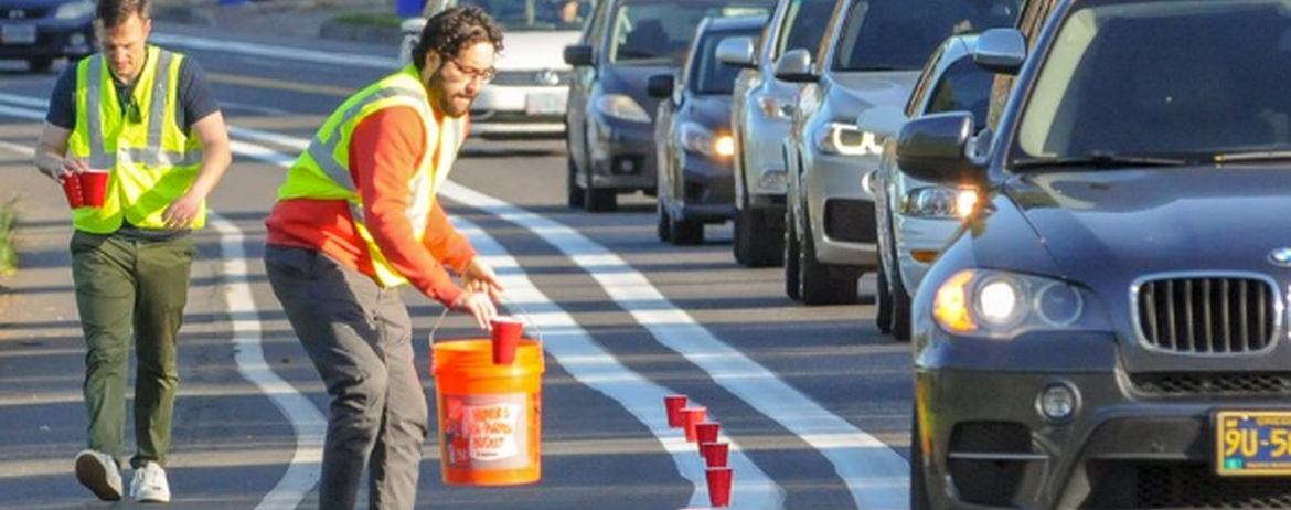 Вже кілька днів поспіль по усьому світу триває акція #RedCupProject. Це акція-протест, де велосипедисти виставляють червоні пластикові стаканчики вздовж ліній, які позначають краї велодоріжок, щоб довести, що відокремлення велодоріжки намальованою